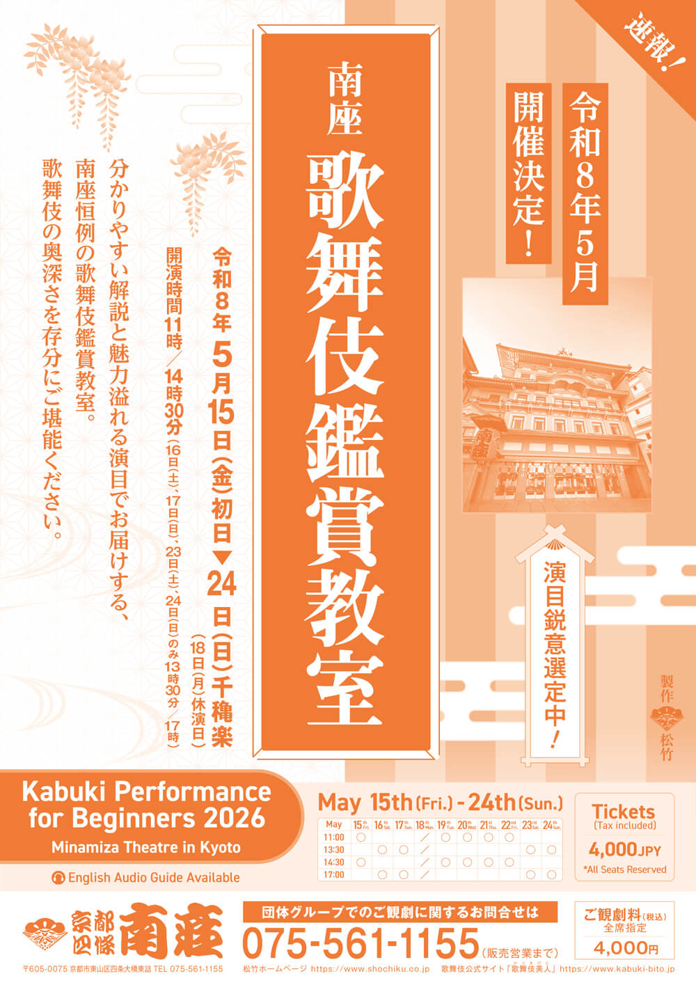 *Part 2 on the 18th will be 'Kabuki in Kimono', a performance where customers are recommended to wear kimono.