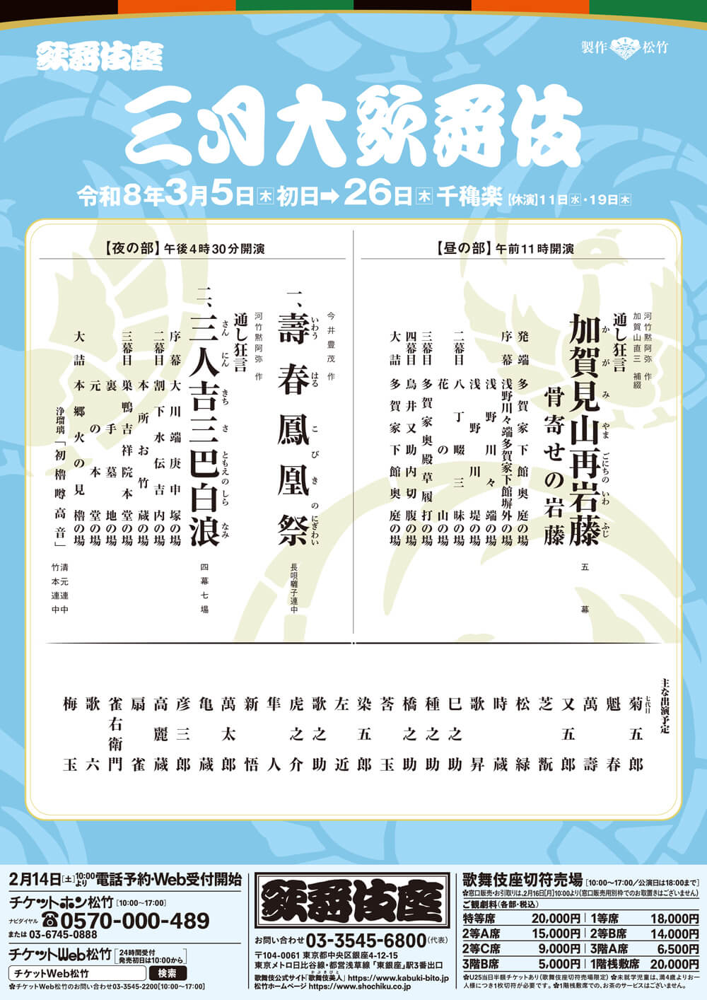 *The 24th (Sat) Matinee/Evening Show will be 'Kabukiza Kimono Day', a performance where customers are recommended to wear kimono.