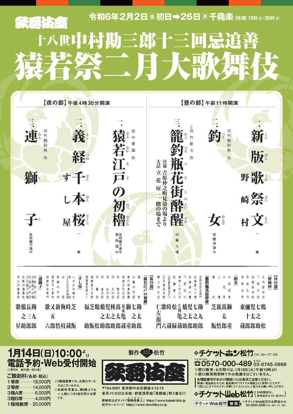 *The 24th (Sat) Matinee/Evening Show will be 'Kabukiza Kimono Day', a performance where customers are recommended to wear kimono.